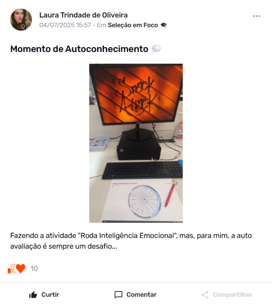 “Ampliou minha visão de negócio, pois me ajudou a compreender melhor a atuação de outras áreas, fortalecer conexões e absorver um conteúdo rico, com foco na qualidade do atendimento. Essa experiência me fez sentir reconhecida, valorizada e mais confiante para desempenhar meu trabalho com ainda mais segurança.”